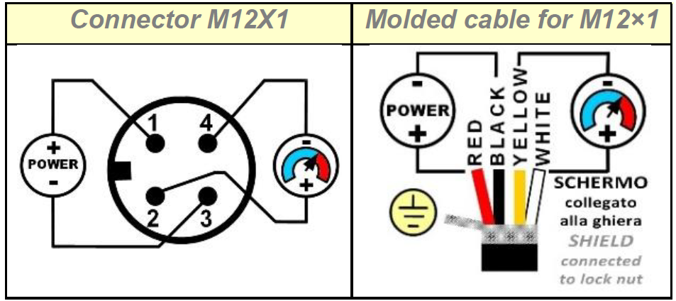 | CONNECTION | Connettore M12 4 poli maschio 4 poles M12 male connector |