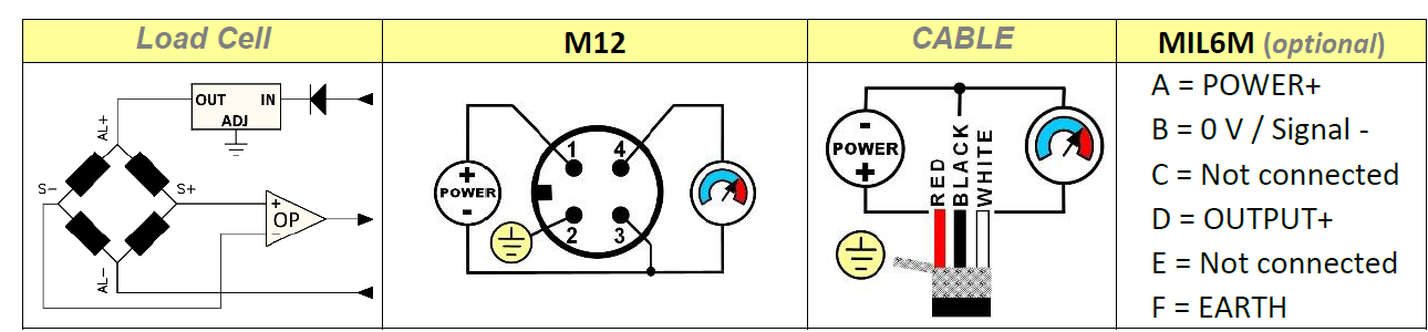 CONNECTOR OUTPUT M12 4 Poles Male connector with 3m cable