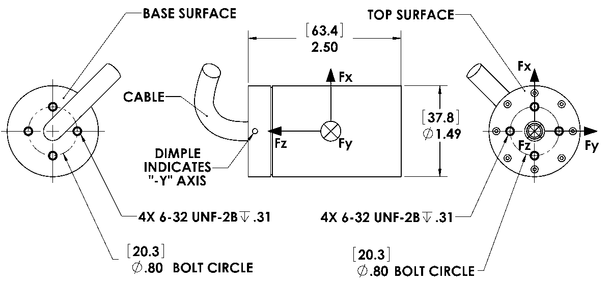 Fx, Fy, Fz Hysteresis < 1% Full Scale Output