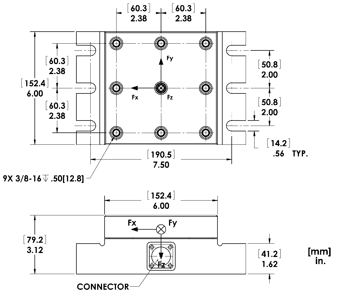 Fx, Fy, Fz Hysteresis < 1% Full Scale Output
