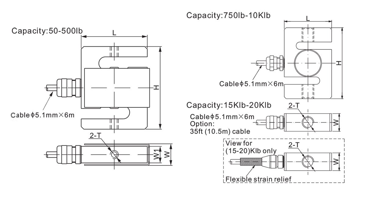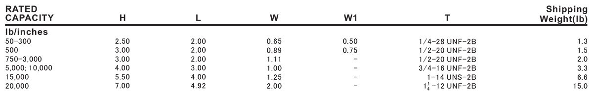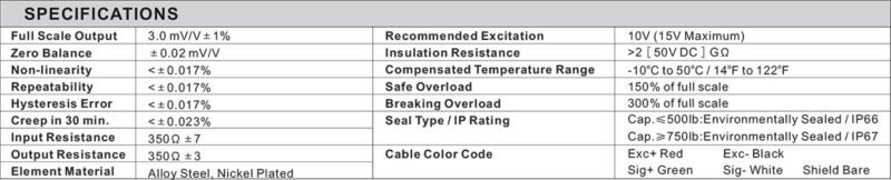 - Rated Capacities: 50lb, 100lb, 200lb, 250lb, 300lb, 500lb, 750lb, 1Klb, 1.5Klb, 2Klb, 2.5Klb, 3Klb, 5Klb, 10Klb, 15Klb, 20Klb