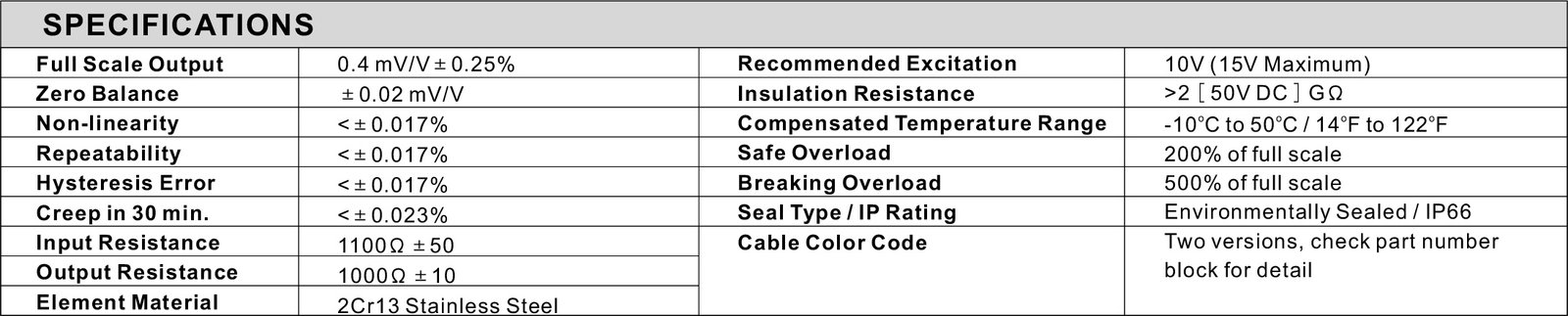 - Full Scale Output: 0.4mV/V ± 0.25%