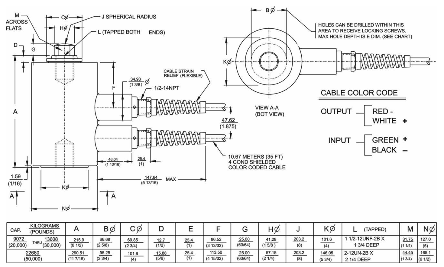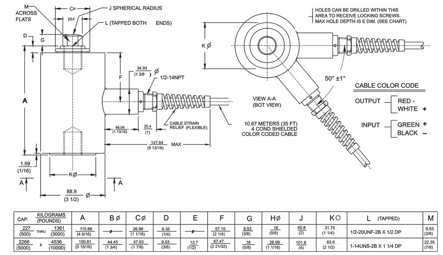 Capacity range: 500, 1K, 2K, 3K, 5K, 10K, 20K, 50K, and 100K lb (227, 454, 907, 1.4K, 2.27K, 4.54K, 9K, 13.6K, 22.7K, and 45.4K kg)