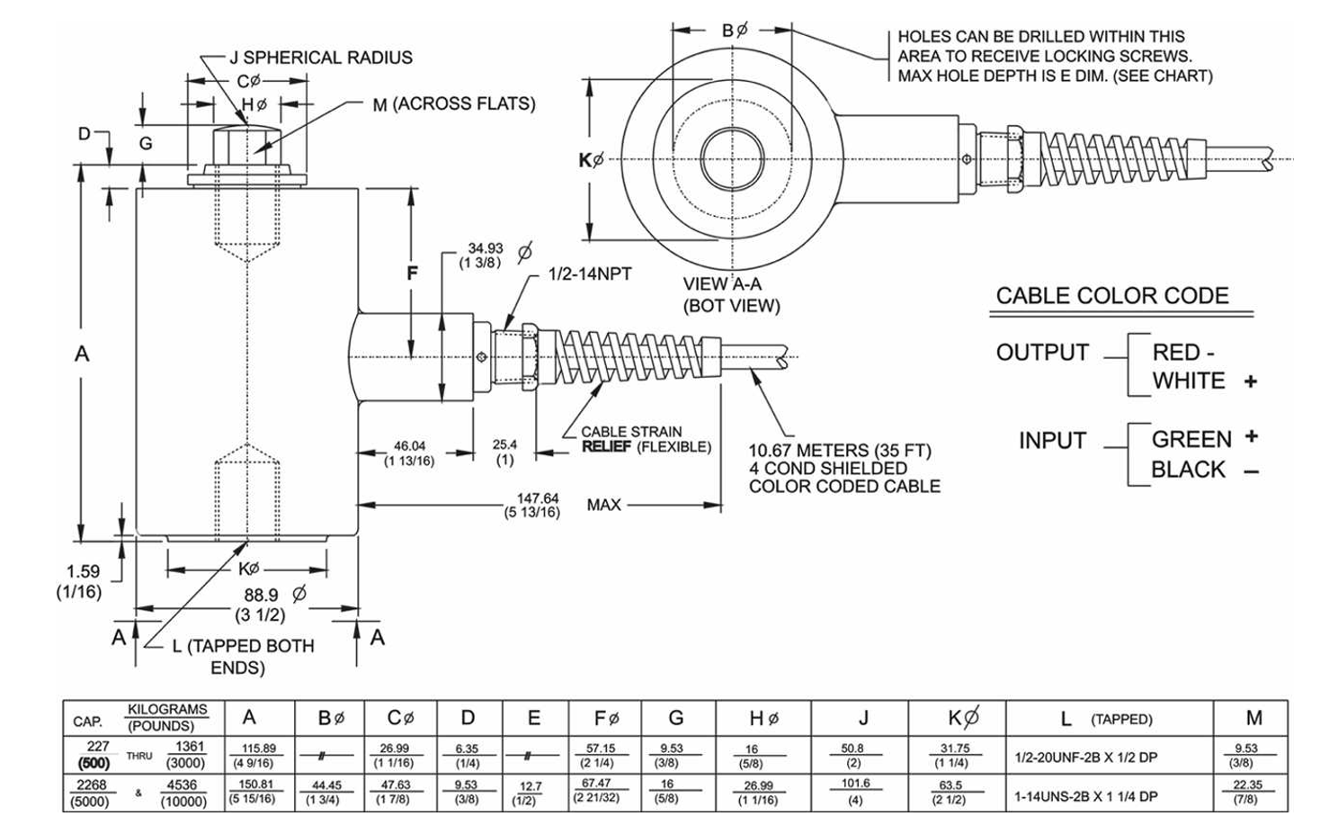 | Capacities | 500, 1K, 2K, 3K, 5K, 10K, 20K, 50K, 100K lb (227, 454, 907, 1.4K, 2.27K, 4.54K, 9K, 13.6K, 22.7K, 45.4K kg) |