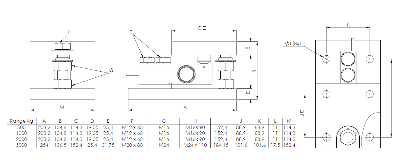 • Capacity range: 500, 1000, 2000, 5000 kg