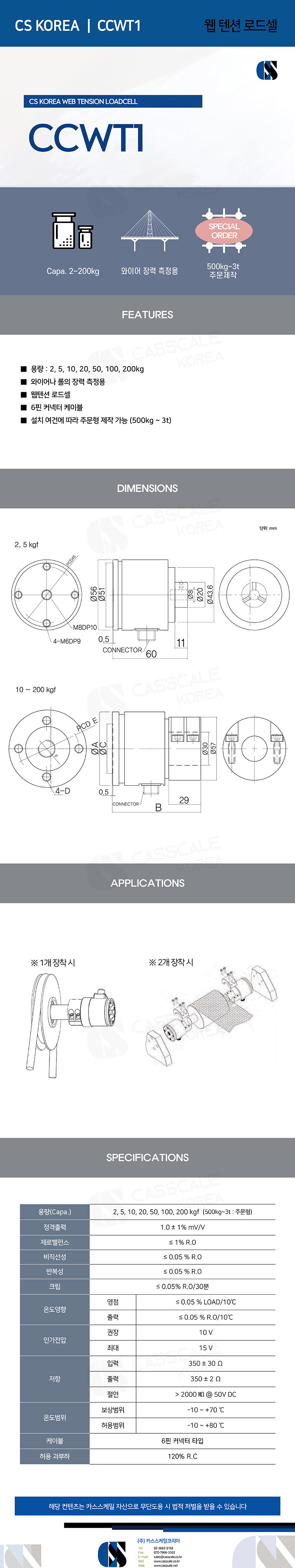 ■ 용량 : 2, 5, 10, 20, 50, 100, 200kg ■ 와이어나 롤의 장력 측정용 ■ 웹텐션 로드셀 ■ 6핀 커넥터 케이블 ■ 설치 여건에 따라 주문형 제작 가능 (500kg ~ 3t) CCWT1-2L CCWT1-5L CCWT1-10L CCWT1-20L CCWT1-50L CCWT1-100L CCWT1-200L CCWT1-500L CCWT1-1T CCWT1-2T CCWT1-3T