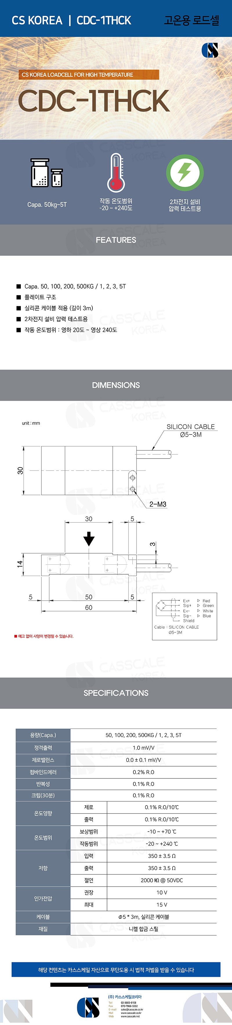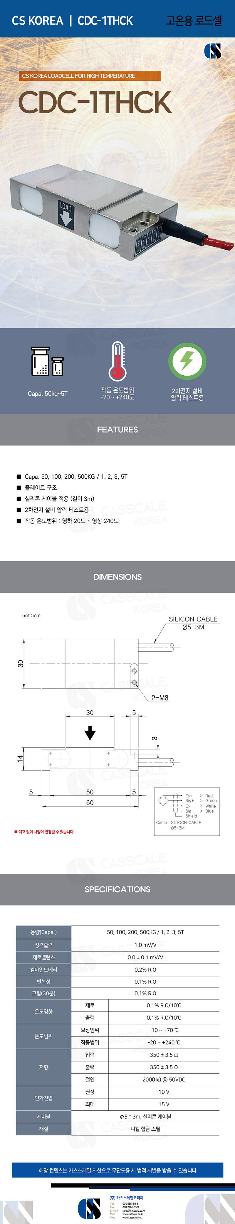 ■ Capa. 50, 100, 200, 500KG / 1, 2, 3, 5T ■ 플레이트 구조 ■ 실리콘 케이블 적용 (길이 3m) ■ 2차전지 설비 압력 테스트용 ■ 작동 온도범위 : 영하 20도 ~ 영상 240도 ■ CASKOREA 호환 : DC-1THCK