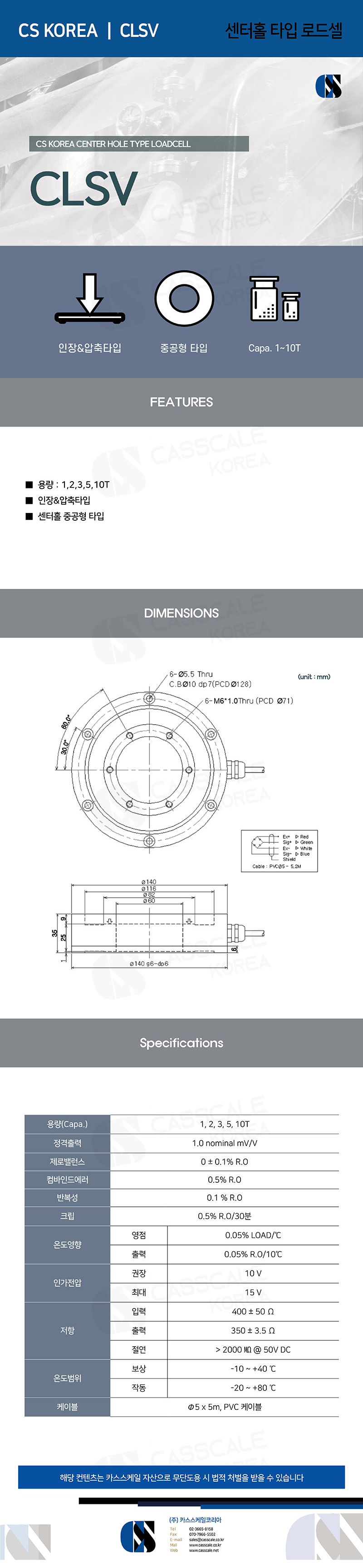 ■ 용량 : 1,2,3,5,10T ■ 인장&압축타입 ■ 센터홀 중공형 타입 ■ CASKOREA 호환 : LSV-3T