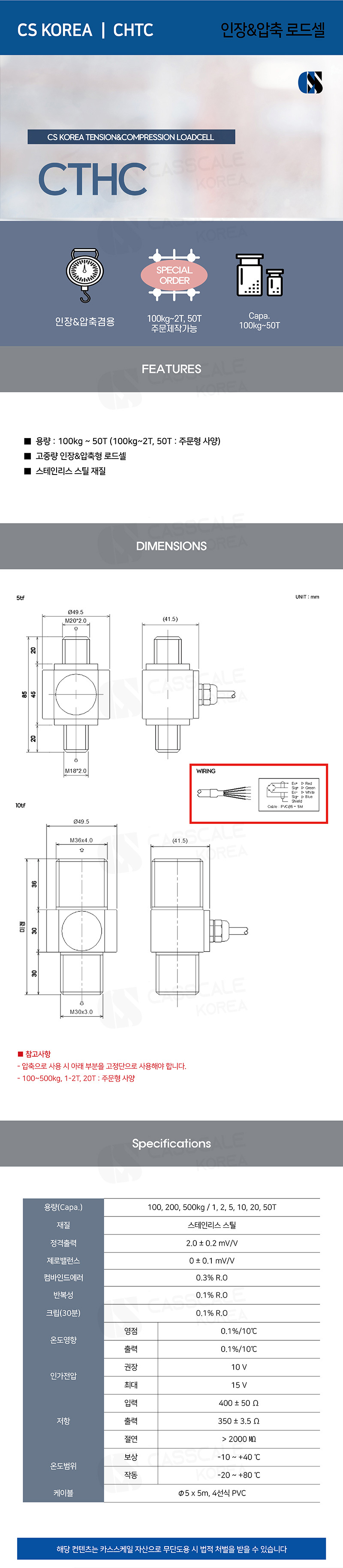 ■ 용량 : 100kg ~ 50T (100kg~2T, 50T : 주문형 사양) ■ 고중량 인장&압축형 로드셀 ■ 스테인리스 스틸 재질 CTHC-100LCK CTHC-200LCK CTHC-500LCK CTHC-1TCK CTHC-2TCK CTHC-5TCK CTHC-10TCK CTHC-20TCK CTHC-500TCK