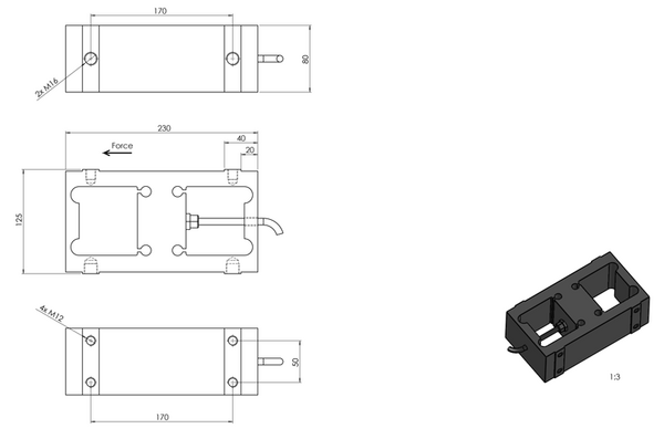 If no or only a small horizontal resultant force is present, you can mount the load cell on a slant to give rise to one.