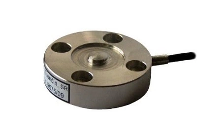 Universal membrane load cell with four through holes for fixing to the support.