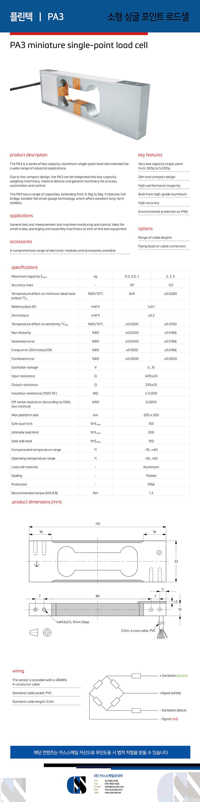 Capacity: 300 g to 5,000 g low-capacity single-point load cell