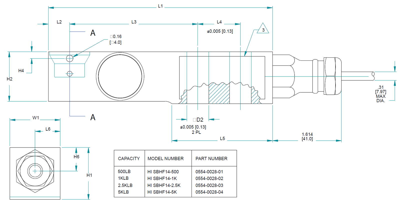| Parameter | 500 LB | 1 KLB | 2.5 KLB | 5 KLB |