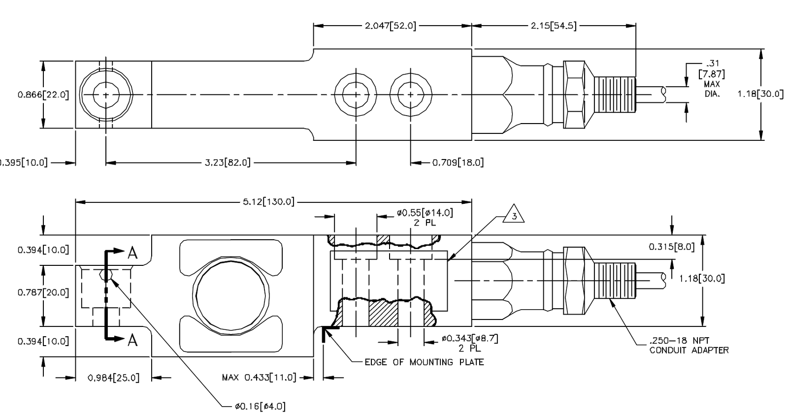 HIBBH06 – C2® Stainless Steel, Hermetically Sealed Bending Beam Load Cell (44 lbs – 450 lbs)