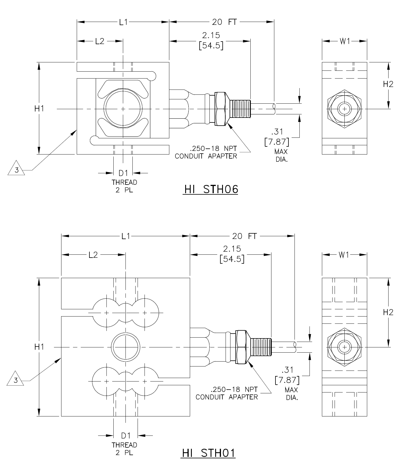 H1 H2 L1 L2 W1 D 1 THREAD