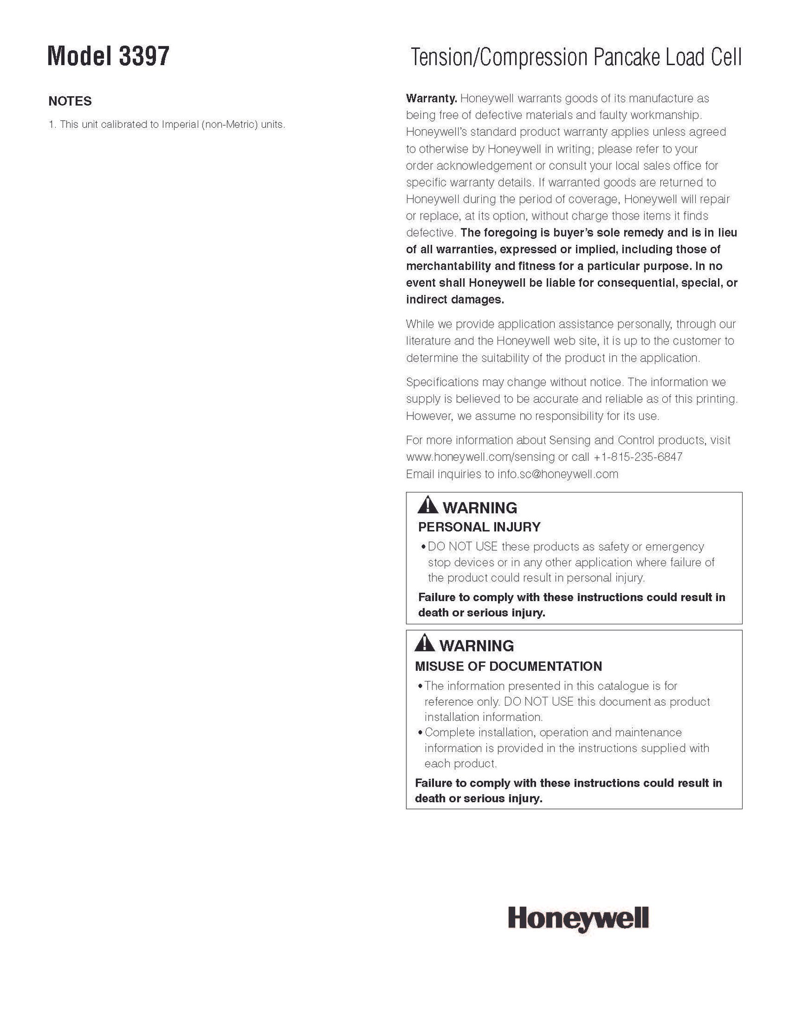Honeywell Model 3397 Tension/Compression Pancake Load Cell