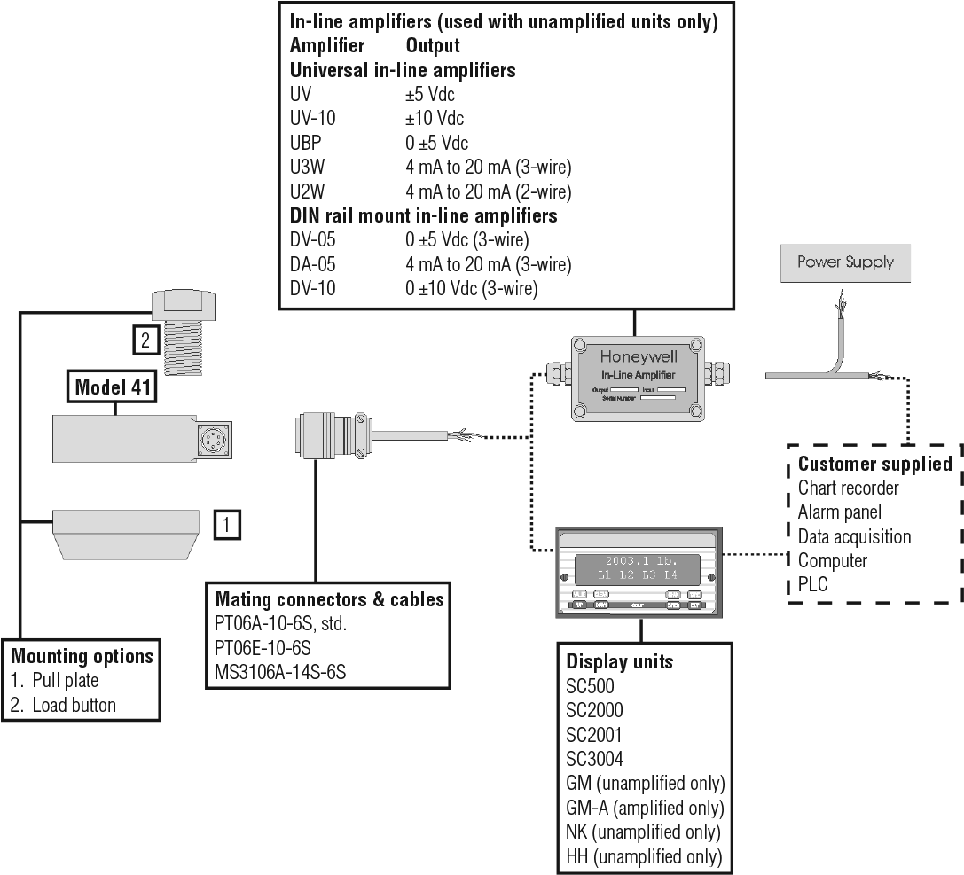 • mV/V output (standard); 4 mA to 20 mA and 0 Vdc to 5 Vdc (optional) outputs