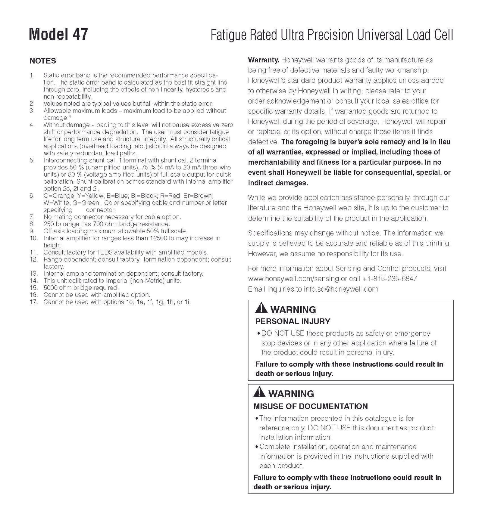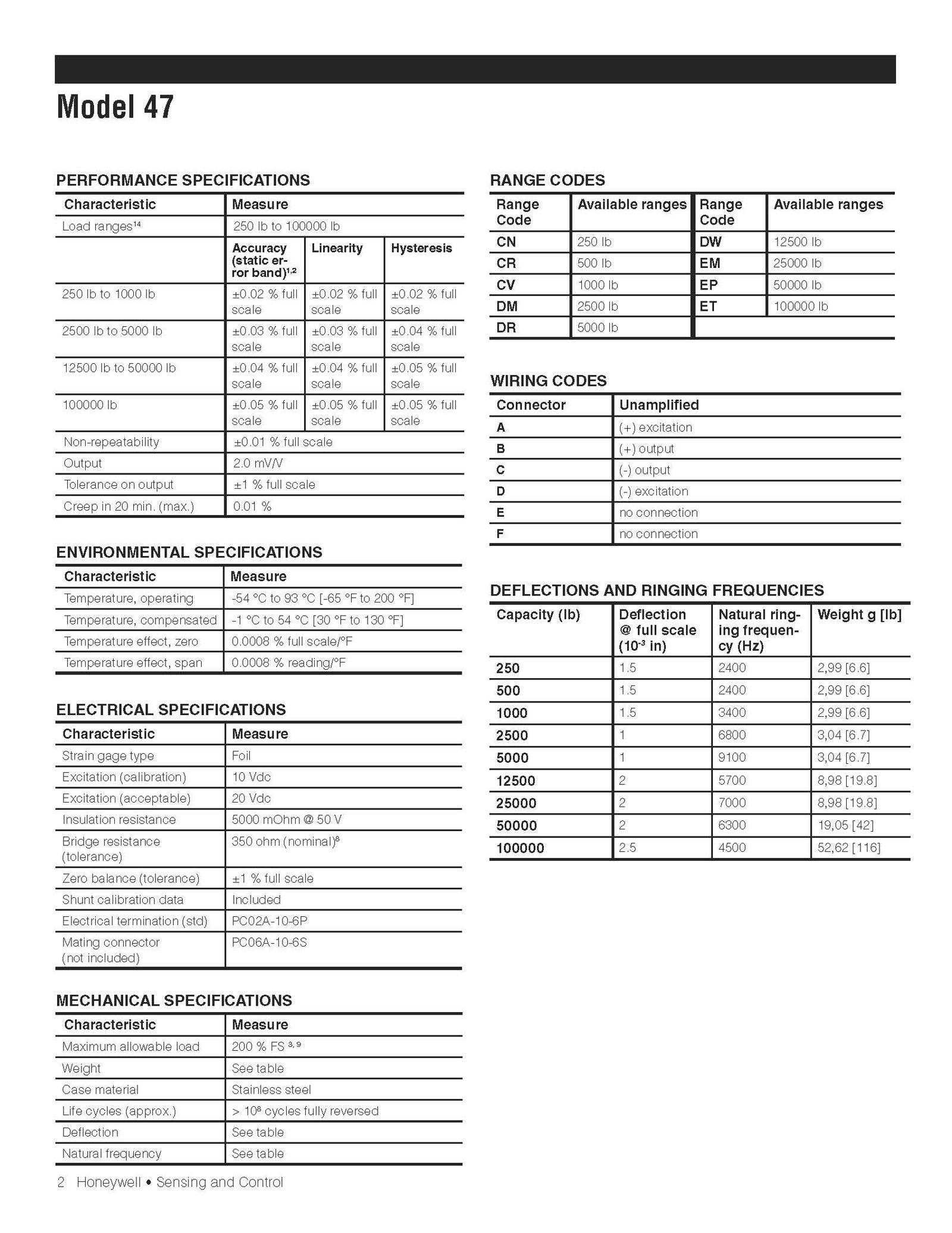 Honeywell / Model 47 / 피로 등급 초정밀 유니버설 로드셀