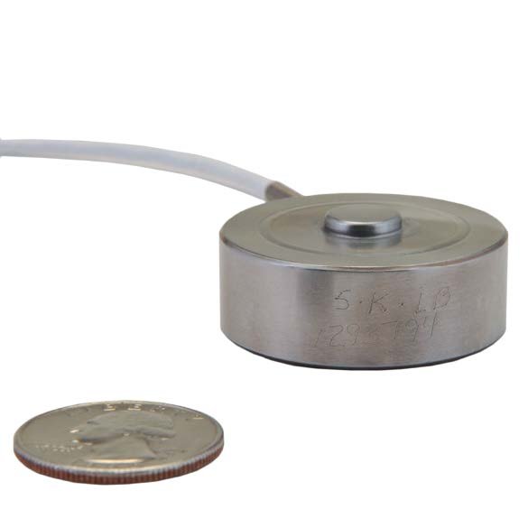 Model 53 load cells are bonded foil strain gage transducers designed for cost efficient production and testing applications (i.e. press calibration). Engineered compression force measurements up to 50K lb., this model achieves a maximum non-linearity of 0.5 % full scale. Precision gaging techniques and a stainless steel construction provides excellent long-term stability and reliability under severe operating conditions. The Model 53 compression-only load cell has an integral load button machined as part of the load cell. The Model 53 must be mounted on a smooth flat surface for proper operation. Three tapped holes are provided for mounting.