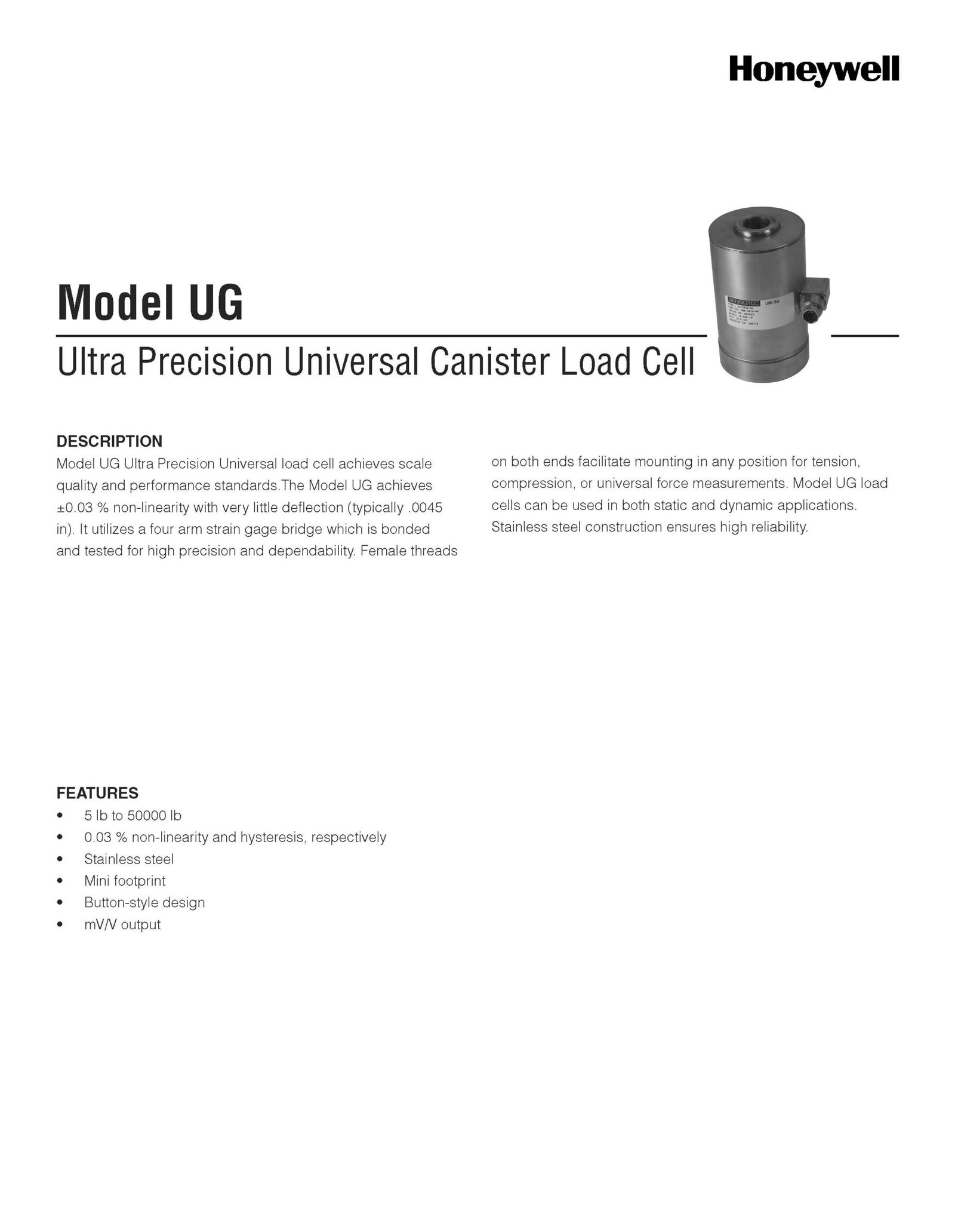 Honeywell / Model UG / Ultra Precision Universal Canister Load Cell