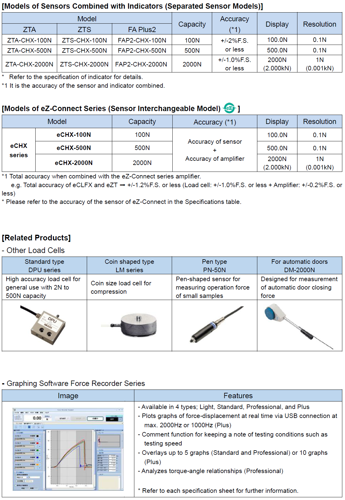 - Separated sensor model force gauges with a dedicated sensor available for a certain measurement purpose