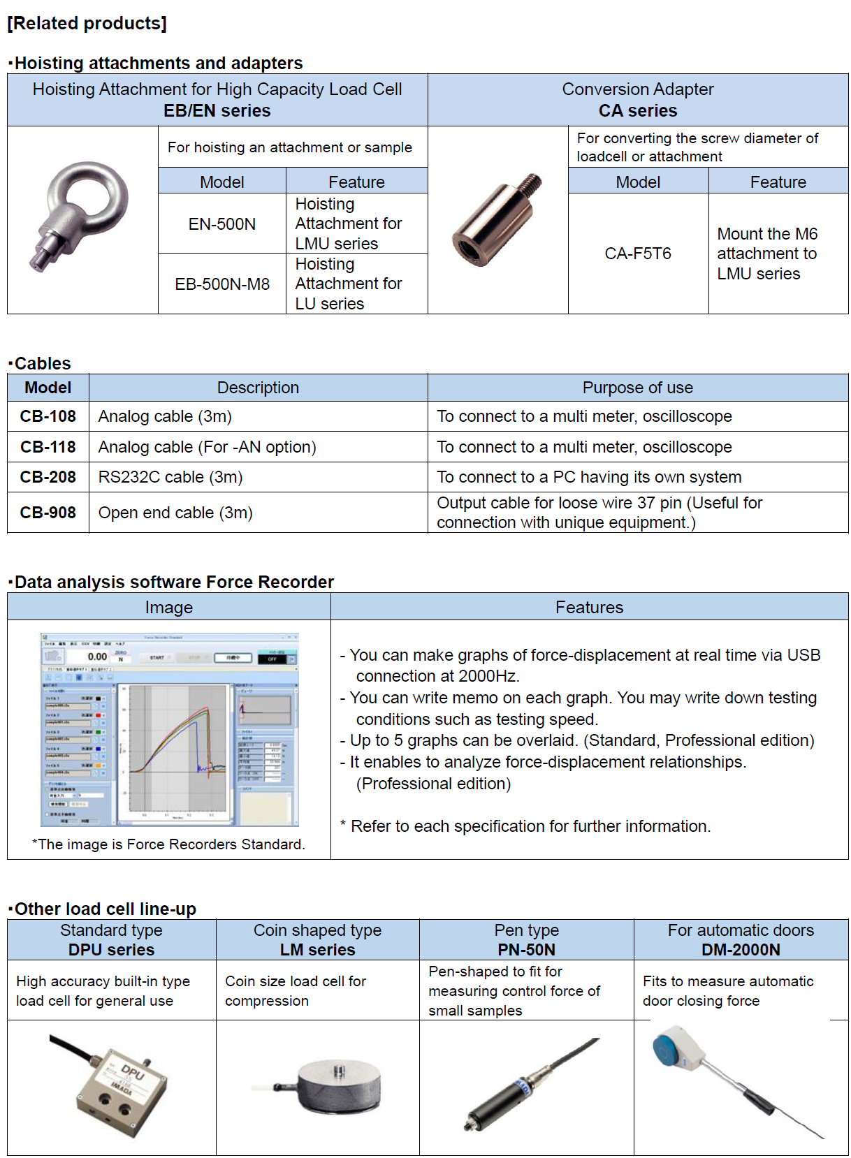 • Separated sensor model force gauges with a dedicated sensor available for a certain measurement purpose