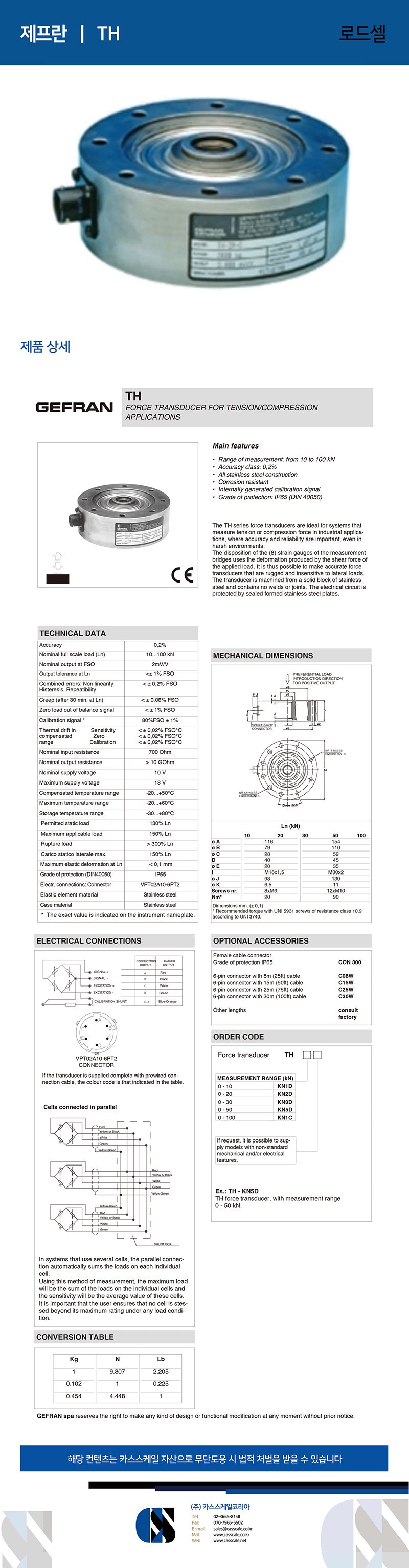 • Accuracy : 0.1% • Power Supply: 10Vdc ~ 15Vdc • 2mV/V Output • 보호등급: IP65 |