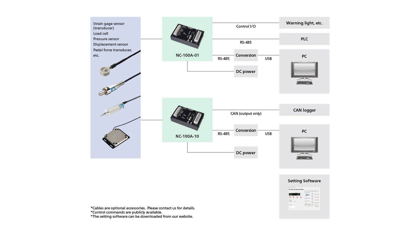 These measuring instruments convert the output of strain gage sensors into digital signals. By installing near a sensor, they suppress noise effects on sensor output while digitization enables long-distance transmission. Channels: 1