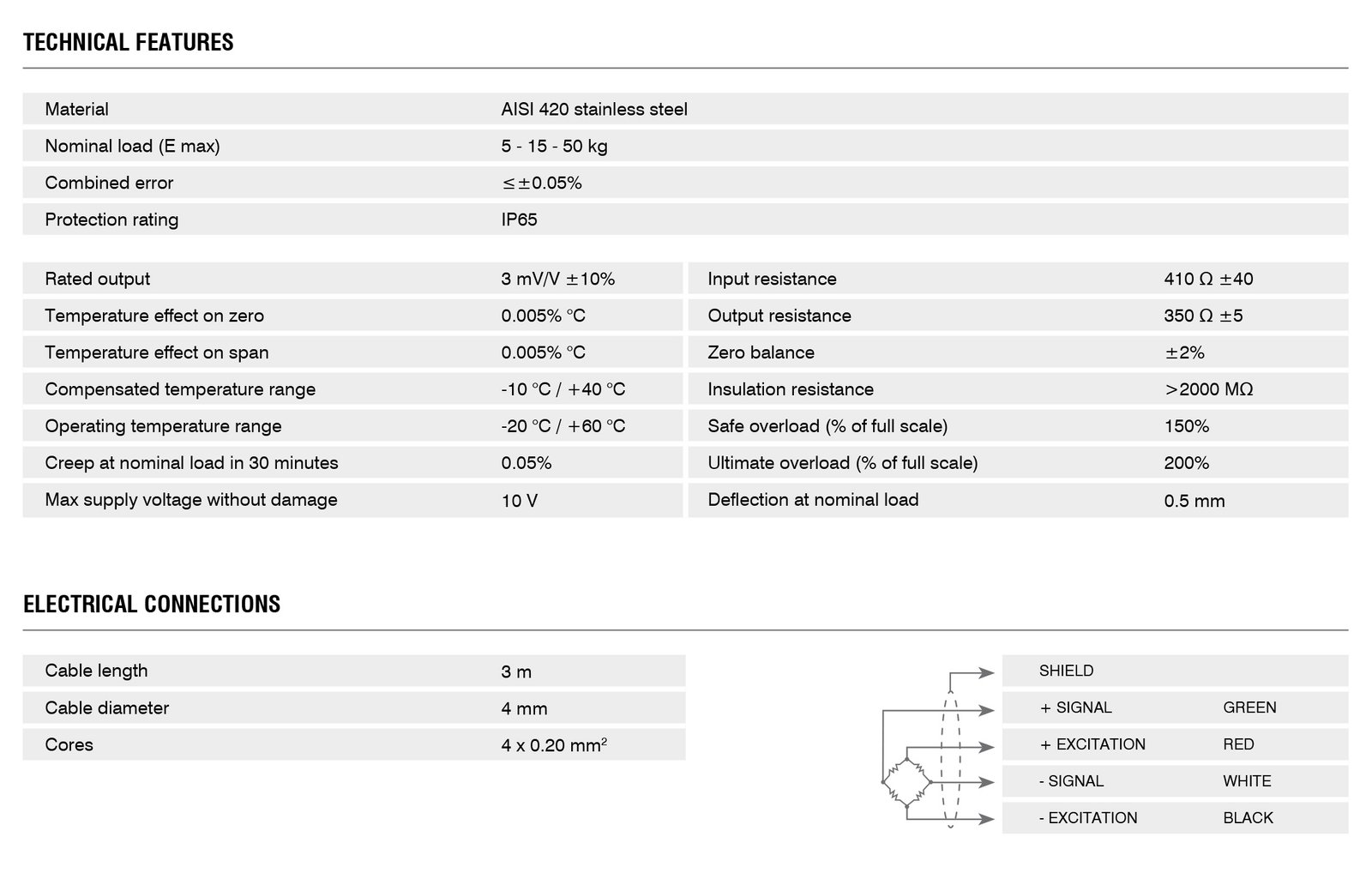 용량:5kg, 15kg, 50kg 재질 : stainless steel 타입 : Single point 보호등급 : IP65