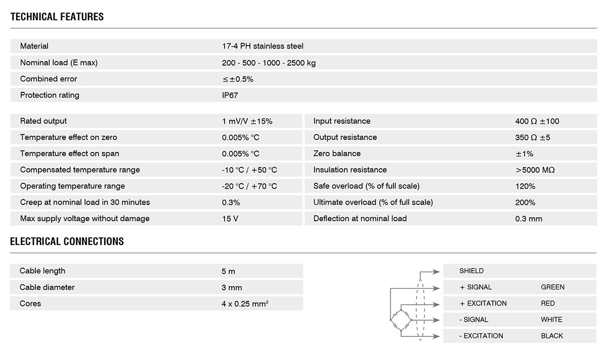 용량:200kg, 500kg, 1000kg, 2500kg 재질 : 17-4 PH STAINLESS STEEL 타입 : compression 보호등급 : IP67