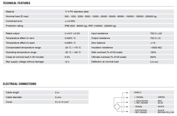재질 : 50-100 kg: ALUMINUM ALLOY (AVIONAL) / 500 kg: 17-4 PH STAINLESS STEEL