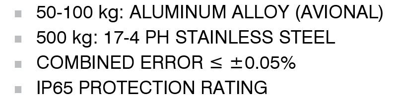 용량:50kg, 100kg, 500kg 재질 : 50-100 kg: ALUMINUM ALLOY (AVIONAL) / 500 kg: 17-4 PH STAINLESS STEEL 타입 : Tensile/compressed 보호등급 : IP65