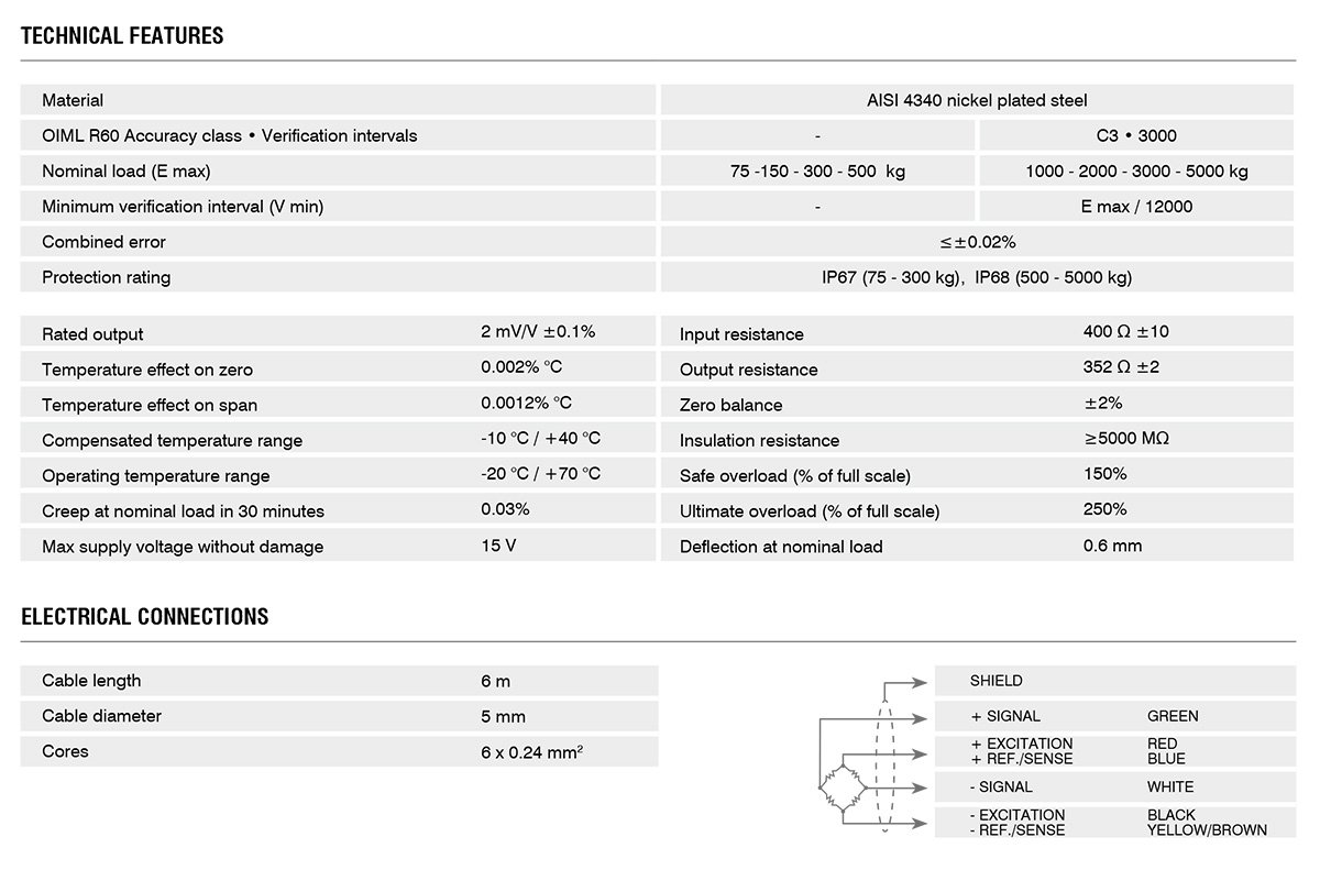 용량:75kg, 150kg, 300kg, 500kg, 1000kg, 2000kg, 3000kg, 5000kg