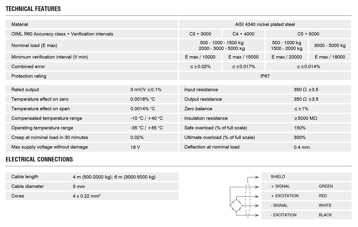용량:500kg, 1000kg, 1500kg, 2000kg, 3000kg, 5000kg 재질 : AISI 4340 NICKEL PLATED STEEL 타입 : Shea Beam 보호등급 : IP67