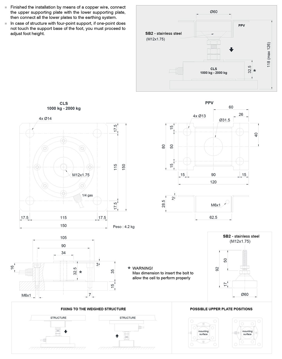 용량:2000kg 재질 : AISI 304 stainless steel 타입 :mounting kit