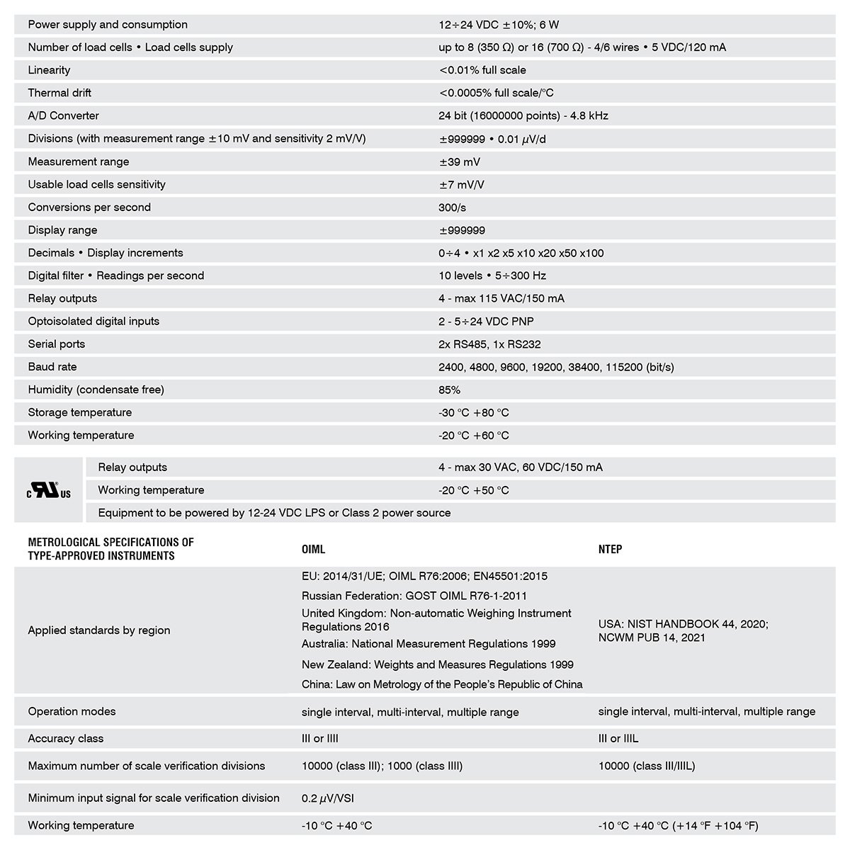 OIML R76:2006 approved, class III, 10000 divis. 0.2μV/VSI