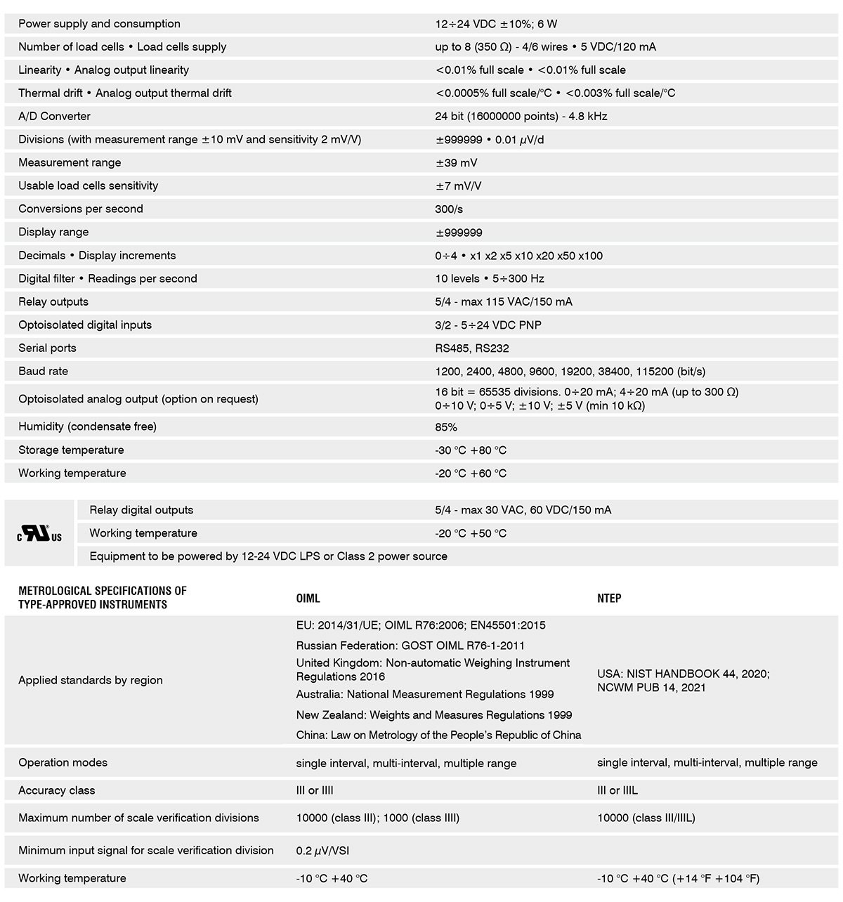- OIML R76:2006 approved, class III, 10000 divis. 0.2μV/VSI