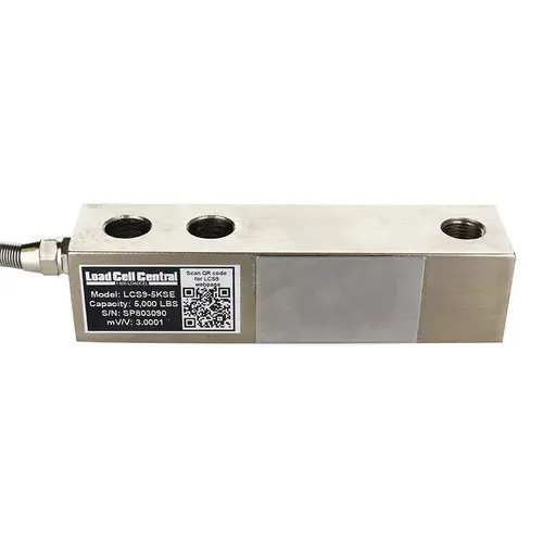 Load Cell Central’s model LCS9 is designed for multiple load cell applications such as industrial floor scales, barrel scales, or medium and low capacity vessel weighing applications. The LCS9 is constructed of a nickel plated high alloy tool steel and fully potted to IP65 to protect from water and moisture damage. Available in stainless steel and hermetically sealed. When used with our Duramount 3E mounting assembly the LCS9 shear beam load cell is the ideal choice for vessel weighing and batching systems.