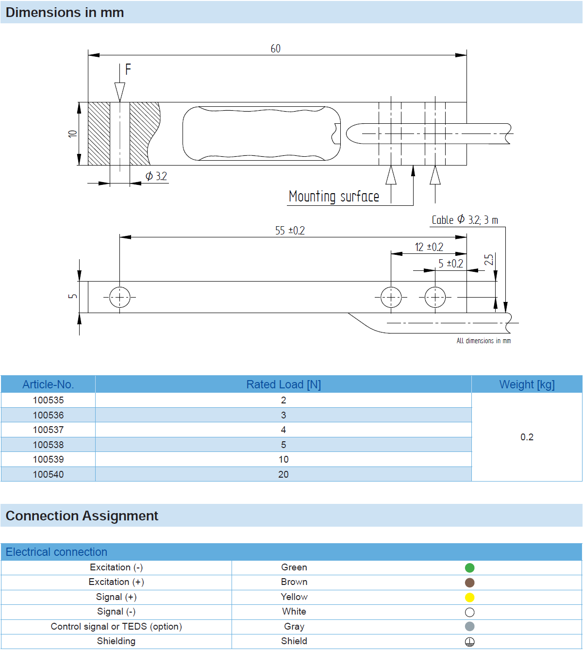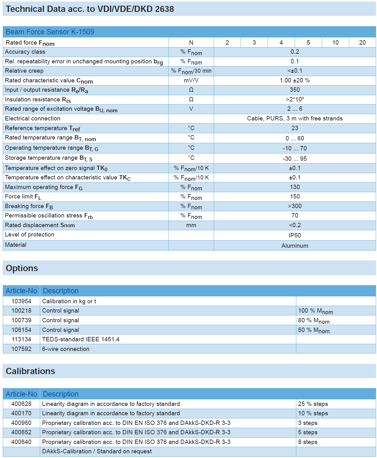 Beam Force Sensor K-1509 with Rated Force from 2 … 20 N