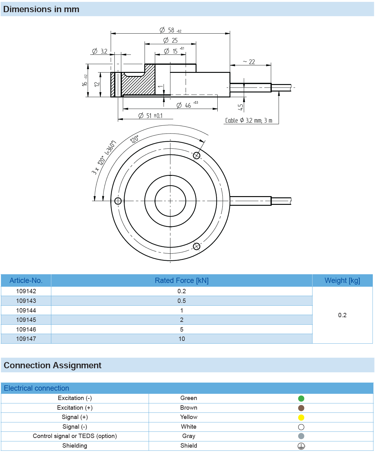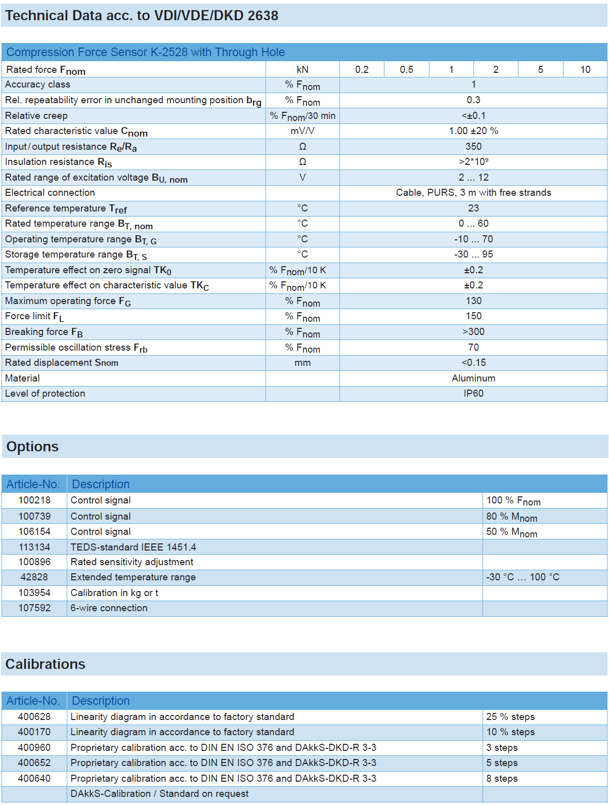 Compression Force Sensor K-2528 with Rated Force from 0.2 … 10 kN