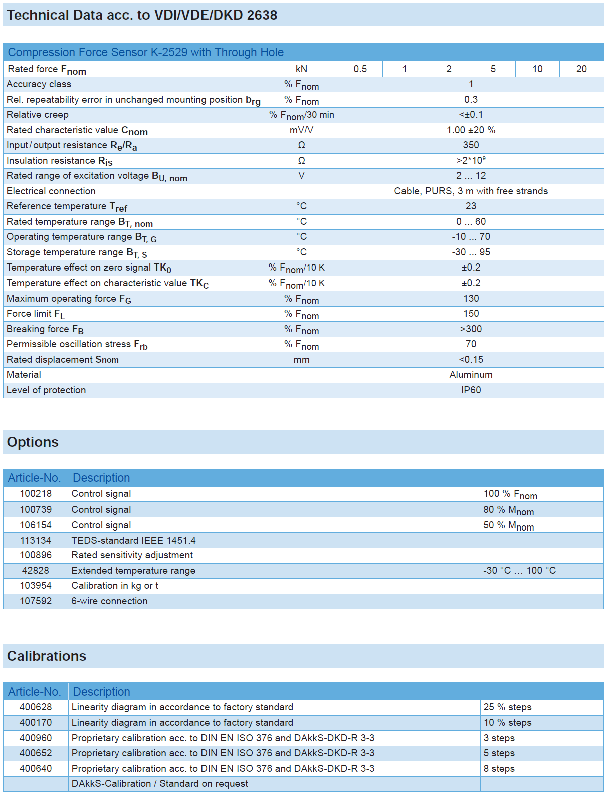 Compression Force Sensor K-2529 with Rated Force from 0.5 … 20 kN