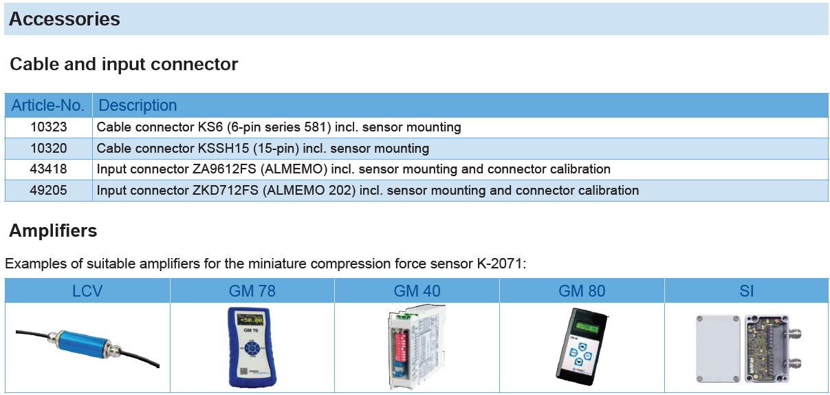 Miniature Compression Force Sensor K-2071 with Rated Force from 5 … 15 kN