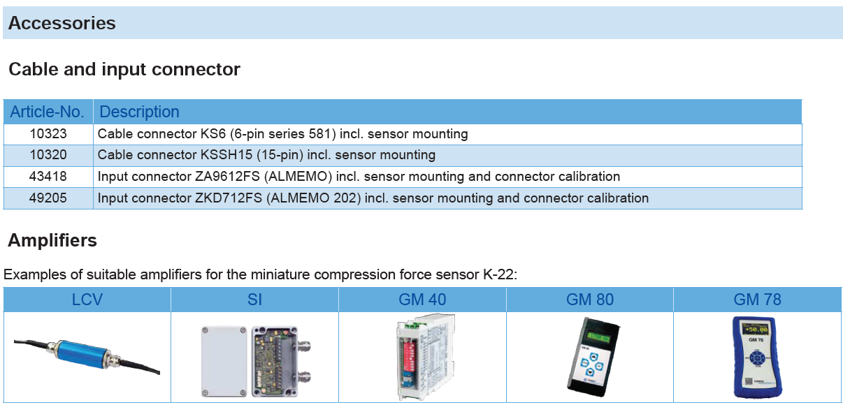 Miniature Compression Force Sensor K-22 with Rated Force from 0.05 … 2 kN
