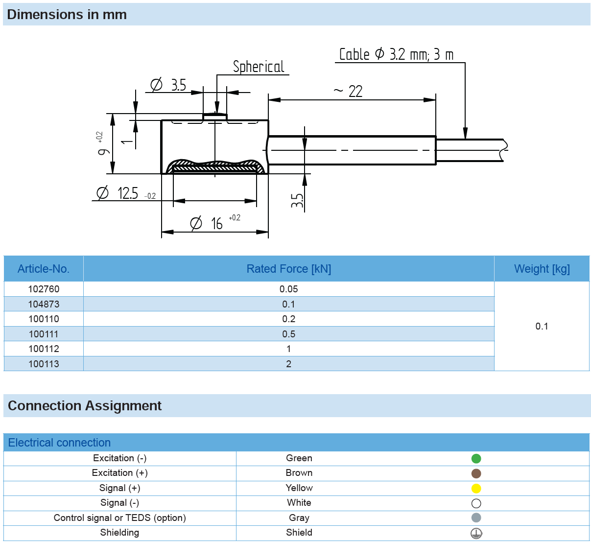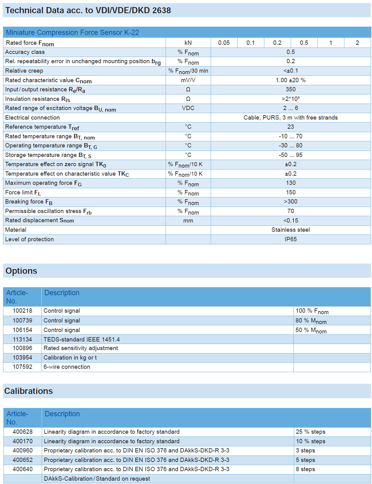 Miniature Compression Force Sensor K-22 with Rated Force from 0.05 … 2 kN