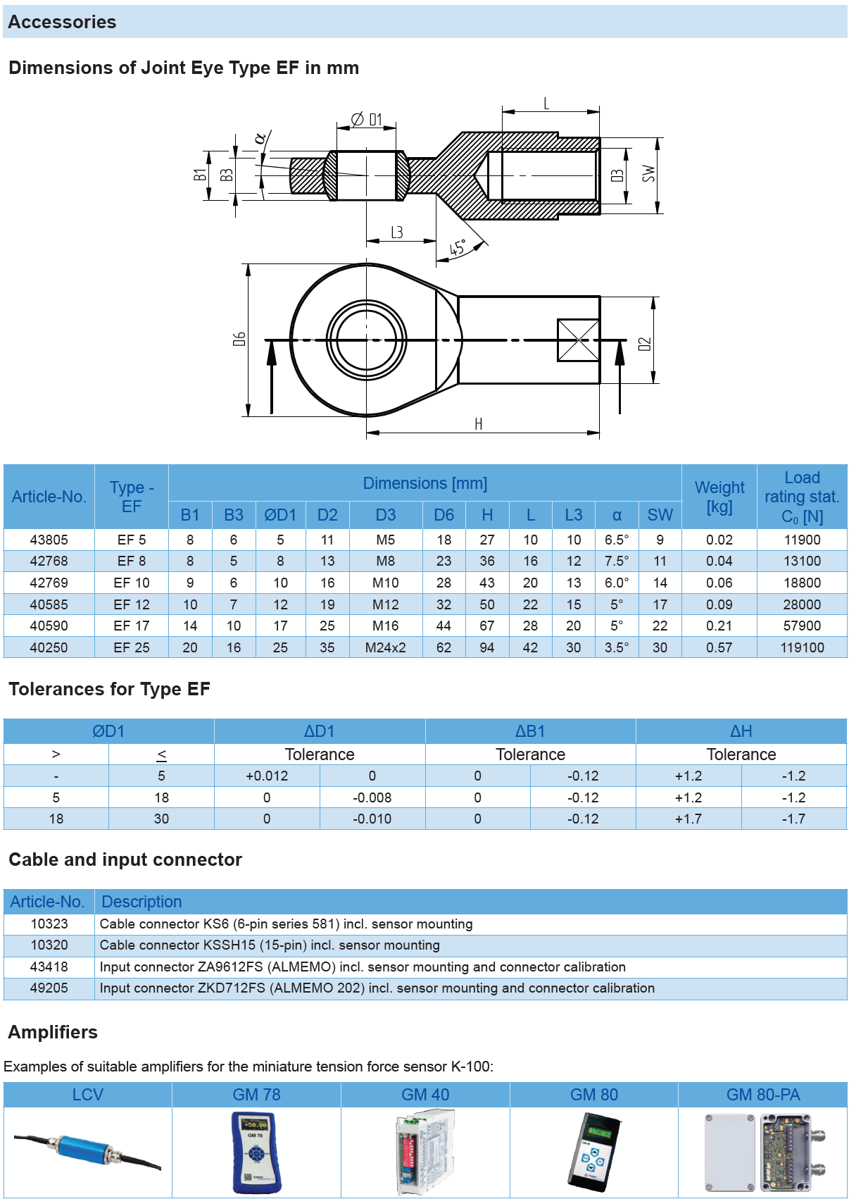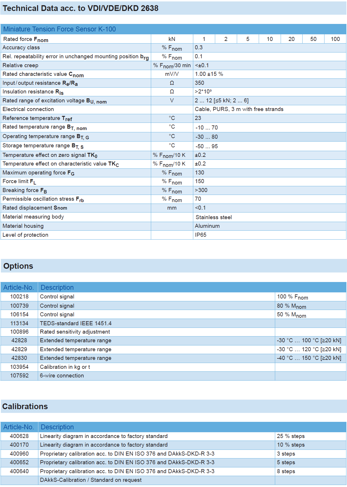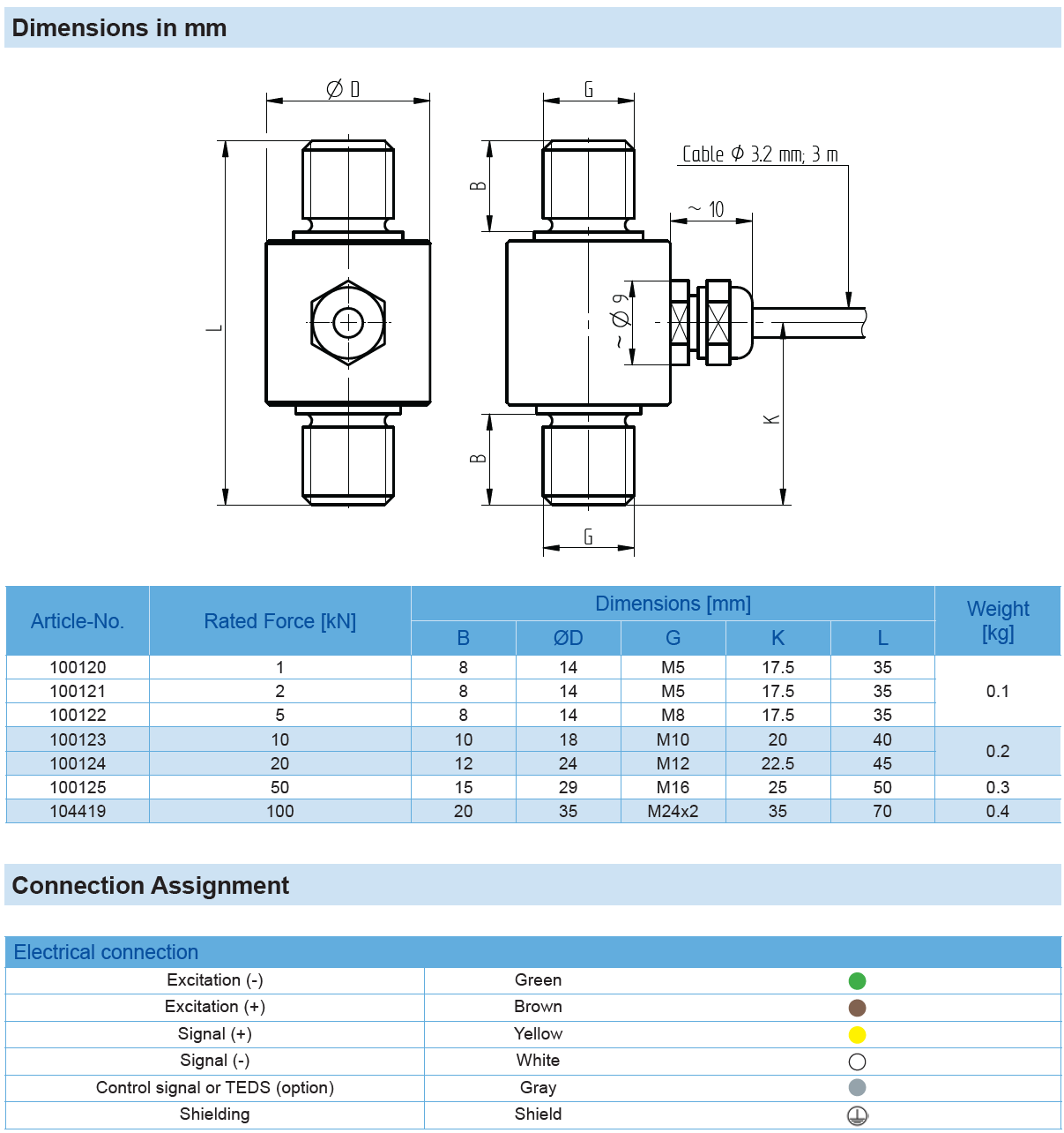Miniature Tension Force Sensor K-100 with Rated Force from 1 … 100 kN