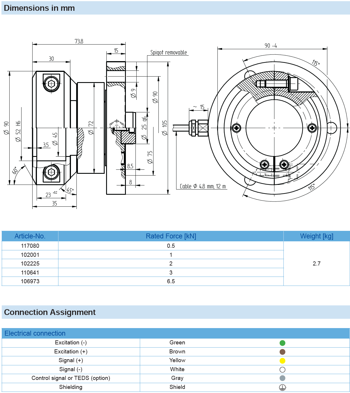 Radial Force Sensor K-2148 with Rated Force from 0.5 … 6.5 kN