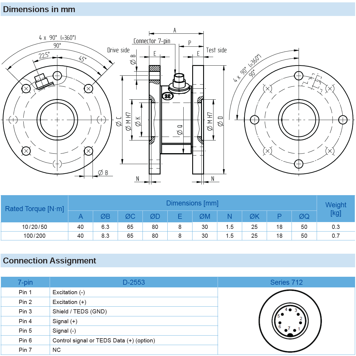 • Torque measuring flange for measurement of e. g. torque