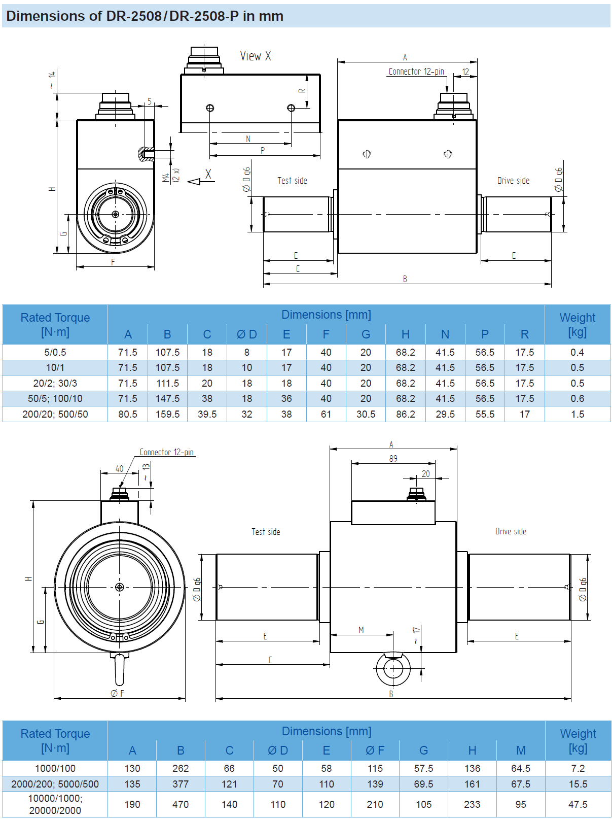 Rotating Dual Range Torque Sensor DR-2508/DR-2508-P