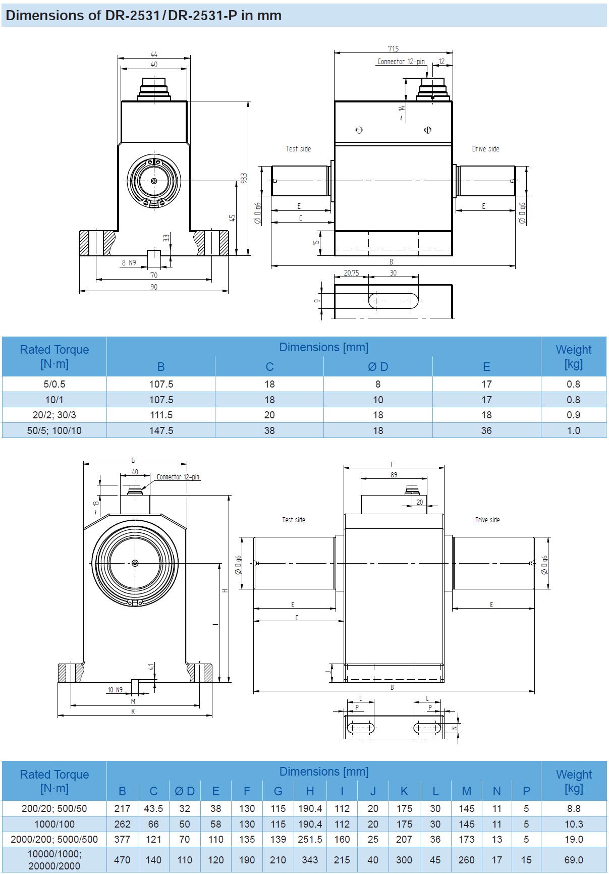 Rotating Dual Range Torque Sensor DR-2531/DR-2531-P