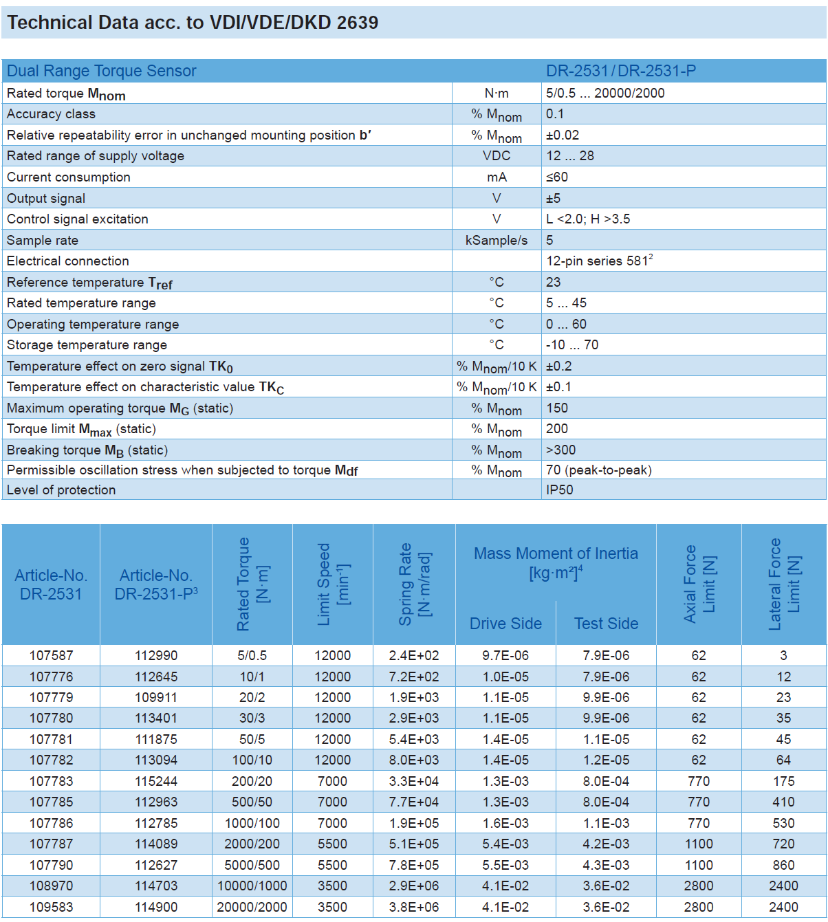 Lorenz / Rotating Dual Range Torque Sensor DR-2531/DR-2531-P (contactless)